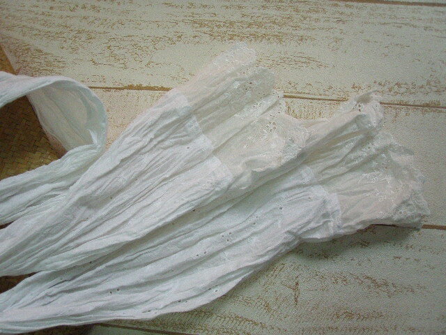 税込み11,000円以上お買い上げで送料無料!セールワッシャー花柄レース白&スカラップレースストール お届けは約1週間以内アンズオリジナルの、肌触りの良い、清楚な白い花柄レースのコットン100%のストールです。