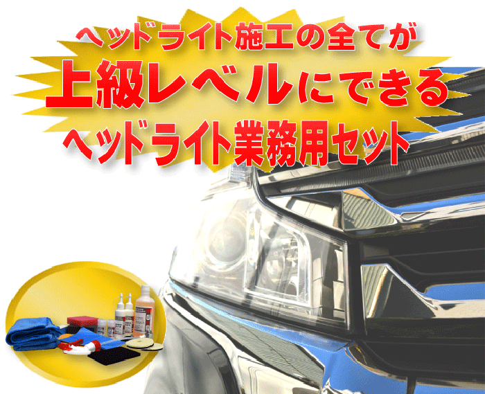 特徴 プロが中古車業界でヘッドライト施工を商売にする為の業務用キットです。