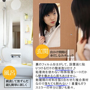 特に凹凸面や艶消し面では隙間から徐々に空気が入り込み、はずれやすくなりますので、時々鏡全体を押しつけて密着させてください。